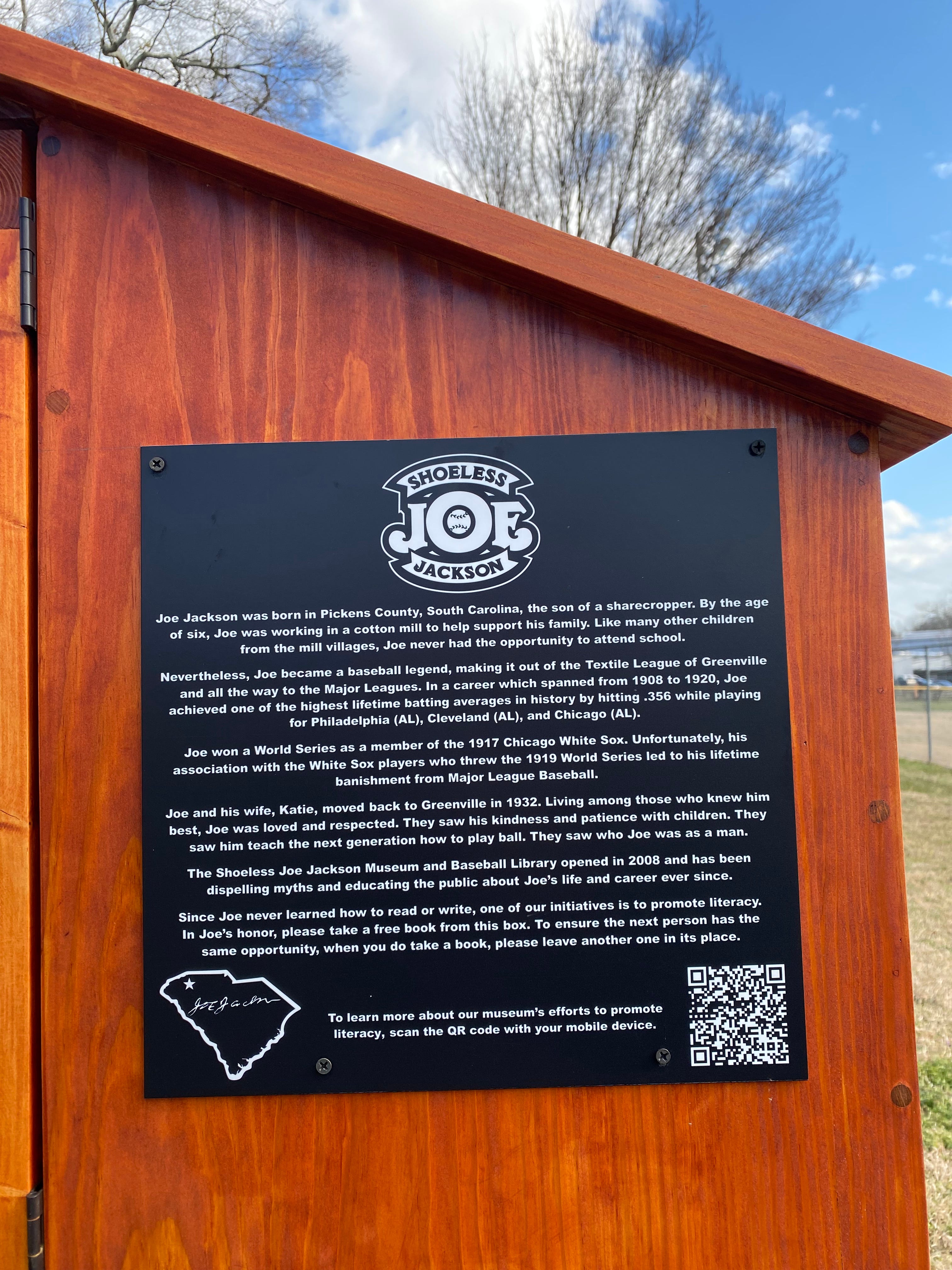 Fun Fact: Woodfield Development is building a luxury apartment complex, across from the field, to be named .408 Jackson to commemorate Shoeless Joe’s 1911 season batting average. The all time record for highest batting average for a rookie still stands today.
